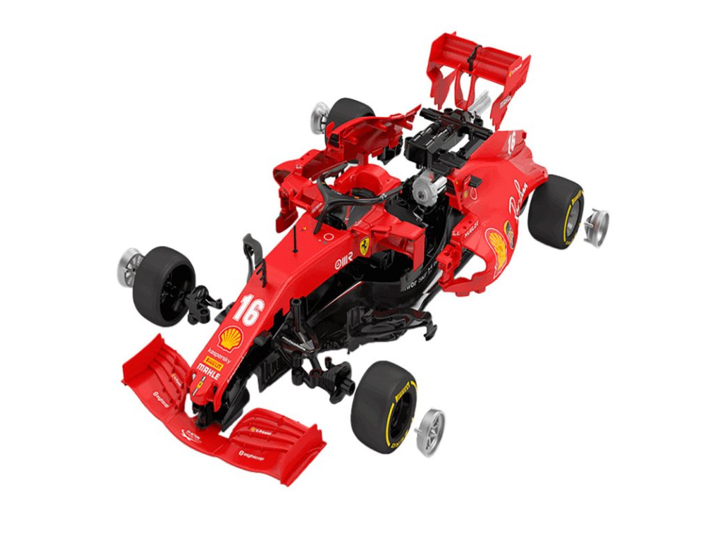 Diaľkovo ovládané auto a stavebnica v jednom. Auto sa skladá zo 65 dielov a verne napodobňuje ikonické červené Ferrari SF1000 v mierke 1:16. Súprava obsahuje podrobný návod na zostavenie modelu. Auto na prevádzku vyžaduje 3 batérie AA a ovládač 2 batérie AA (batérie nie sú súčasťou balenia). Zariadenia pracujú na frekvencii 2,4 GHz, čo zaručuje stabilné pripojenie a plynulé ovládanie. Hračka je vhodná pre deti od 6 rokov. Vzhľadom na pokročilý proces skladania sa odporúča, aby bol model zostavovaný pod dohľadom dospelej osoby.